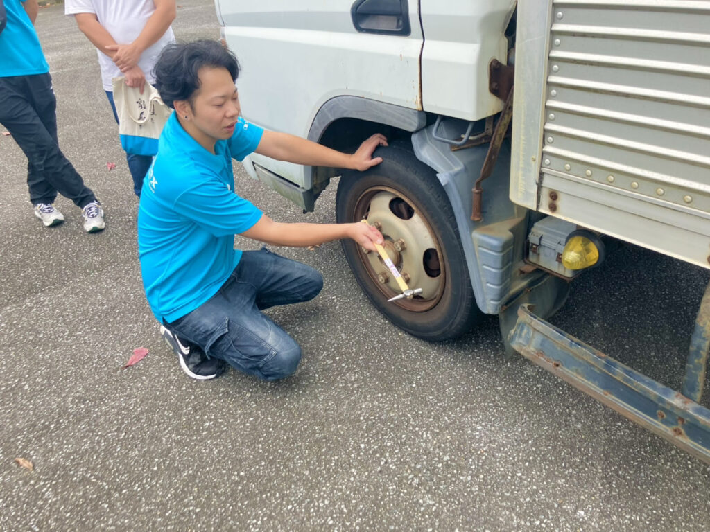その後は参加したスタッフ全員が実際にトラックを運転。安全な操作や離島の道路環境を想定した注意点についてアドバイスを受けました。